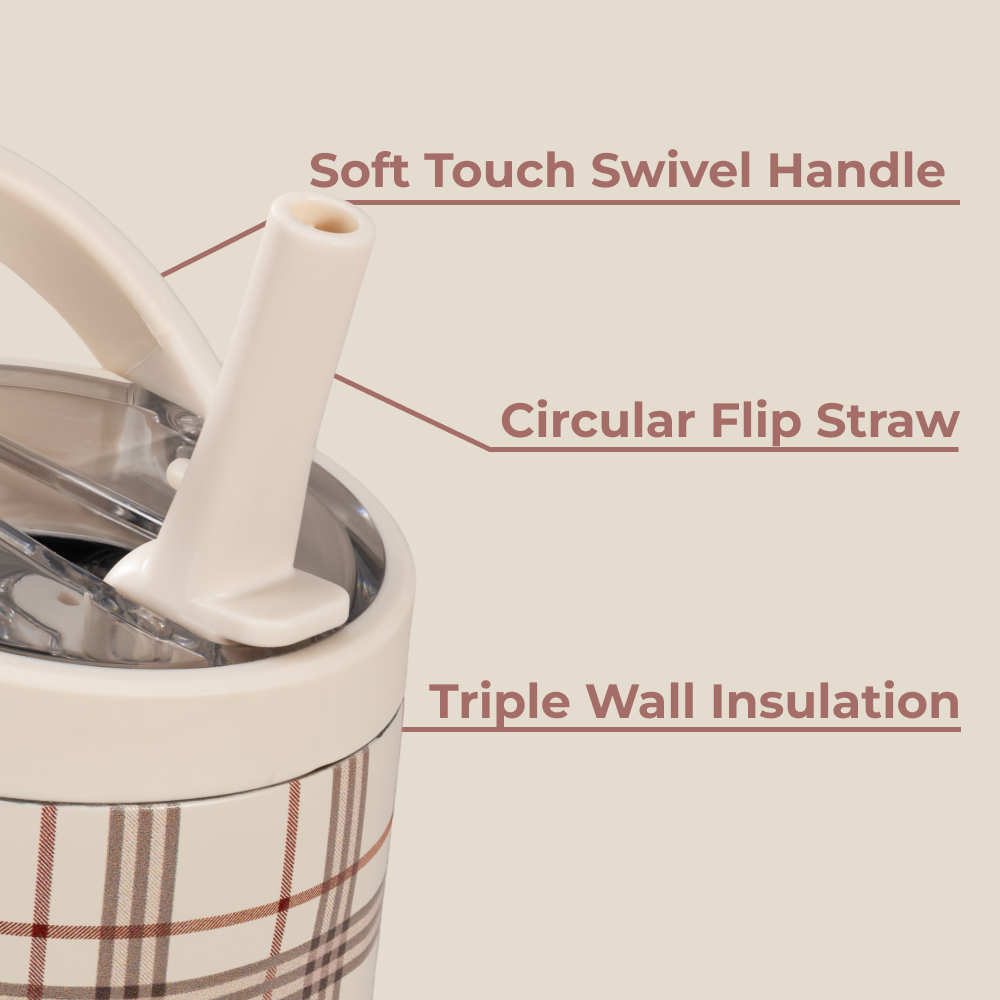 The Sport 20oz in Blair delivers everyday hydration in a compact, functional design. Its cream base with a subtle plaid pattern makes it versatile enough for work, workouts, or weekends. Lightweight and portable, this 20oz Sport Bottle fits easily into cup holders, backpacks, and gym bags. Triple-layer insulated stainless steel keeps drinks ice-cold for hours, helping you stay refreshed through busy schedules and active routines. Completely leakproof with the straw down, this tumbler includes a circular flip straw for smooth sipping, plus an ergonomic bucket handle for easy carrying. A protective rubber base prevents scratches and reduces noise, while the dishwasher-safe body makes cleanup simple. Practical, durable, and compact, the Blair water bottle is hydration designed to support your health and wellness wherever the day takes you. Dimensions: 3.4" x 3.4" x 7.64" Base diameter: 2.59" Capacity: 20 ounces of water ~ 592 mL Weight: 14.72oz ��� WARNING: CHOKING HAZARD ��� Small Parts. This product contains small components that may pose a choking risk. Not suitable for children under 3 years old. Inspect regularly for damage. For questions or concerns, contact customer support.