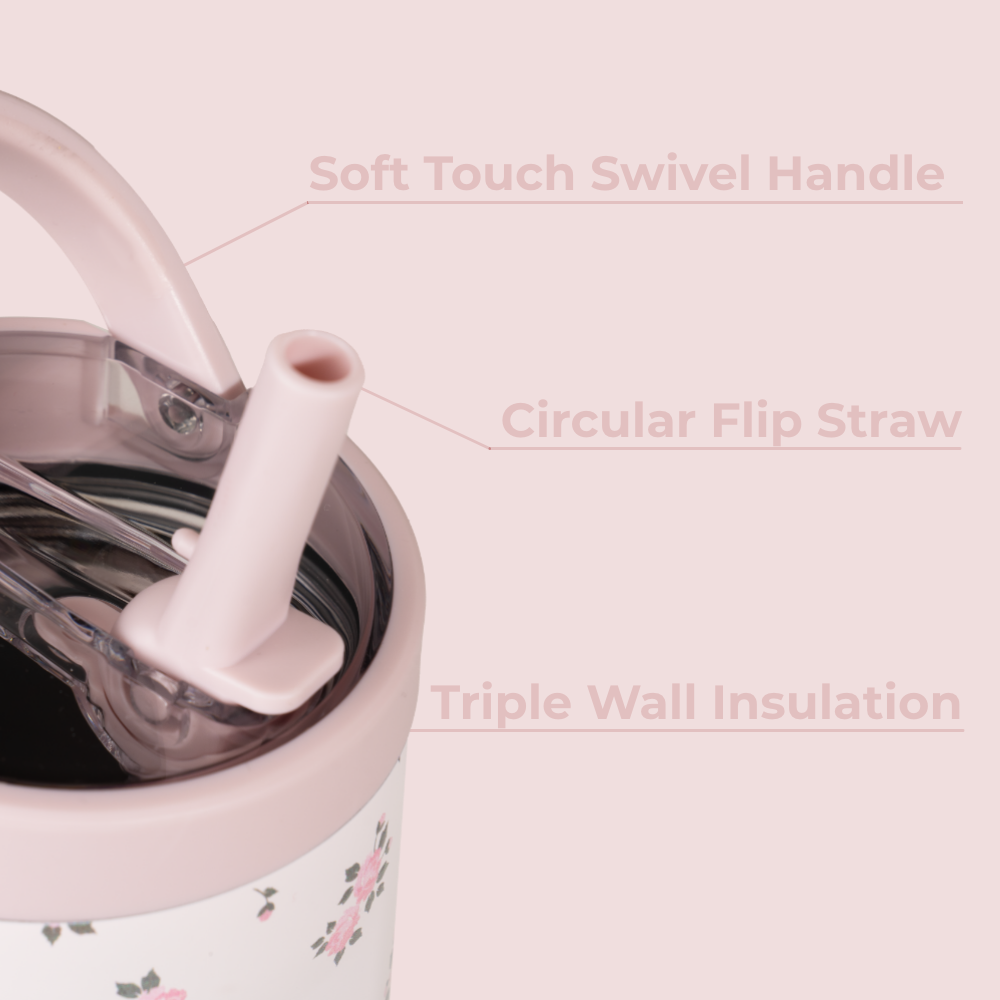 Built for active lifestyles of all ages, the Sport 20oz in Wildrose combines portability with reliable performance. With its cream base patterned with soft pink roses and green leaves, this water bottle adds a subtle floral detail while providing dependable hydration for kids��� school days or adults��� workouts, commutes, and daily routines. The 20oz size is the most compact in the Sport collection ��� lightweight and easy to carry, perfectly sized for backpacks, gym bags, or cup holders. Made from 18/8 stainless steel with triple-wall insulation, the Wildrose tumbler keeps drinks cold for hours, while its dishwasher-safe body makes cleanup simple. Despite its smaller size, it includes all the features of larger Sport bottles: completely leakproof with the straw down, equipped with a circular flip straw for smooth sipping, and finished with an ergonomic bucket handle for easy transport. A protective rubber base adds durability, minimizes noise, and protects surfaces. Compact, practical, and versatile, the insulated tumbler is hydration designed for kids, adults, and anyone who needs a reliable bottle for everyday use. Dimensions: 3.4" x 3.4" x 7.64" Base diameter: 2.59" Capacity: 20 ounces of water ~ 592 mL Weight: 14.72oz ��� WARNING: CHOKING HAZARD ��� Small Parts. This product contains small components that may pose a choking risk. Not suitable for children under 3 years old. Inspect regularly for damage. For questions or concerns, contact customer support.